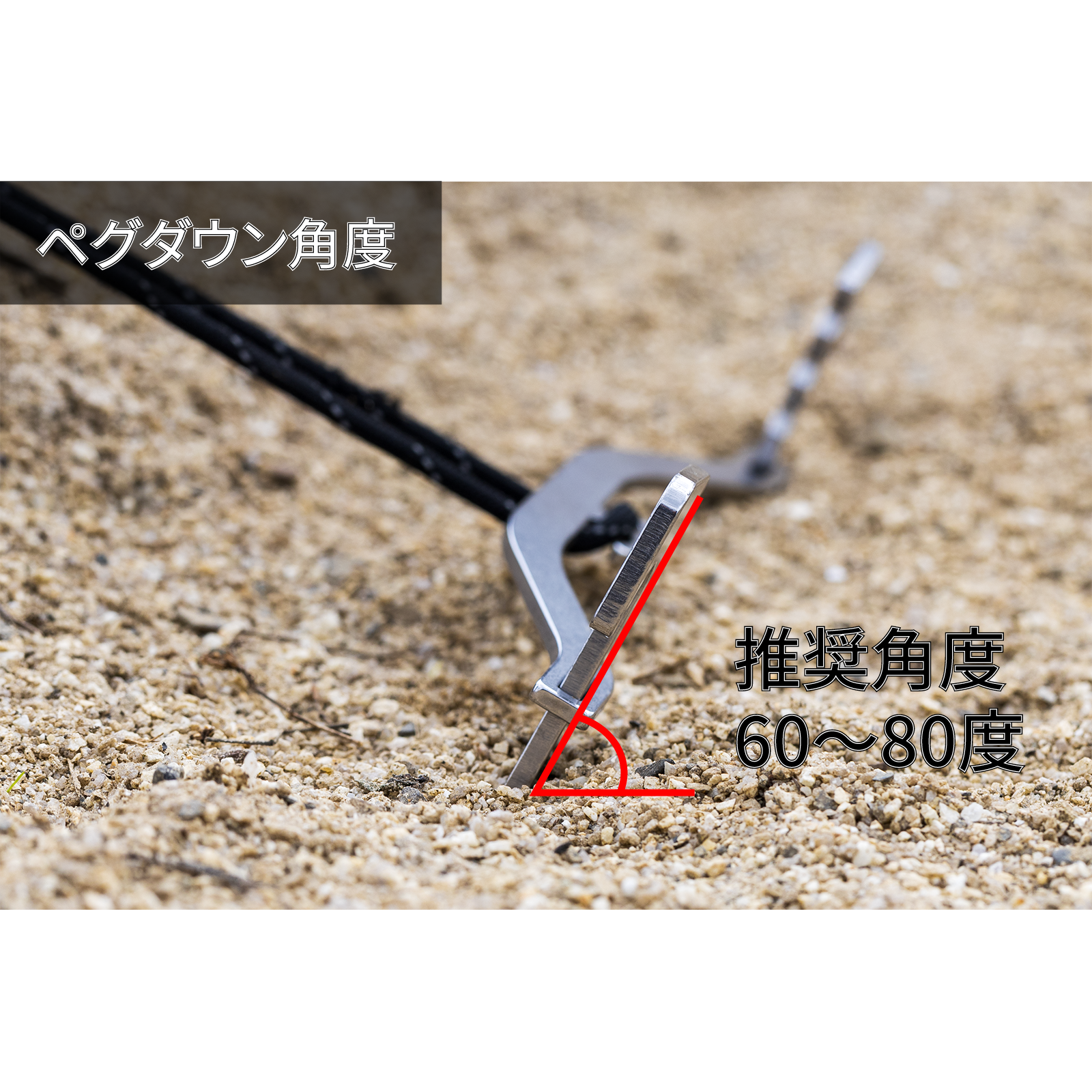 そのような際は2本のペグ使用し、ペグ同士をクロスさせてペグダウンする方法(クロス打ち)が一般的によく使用されております。